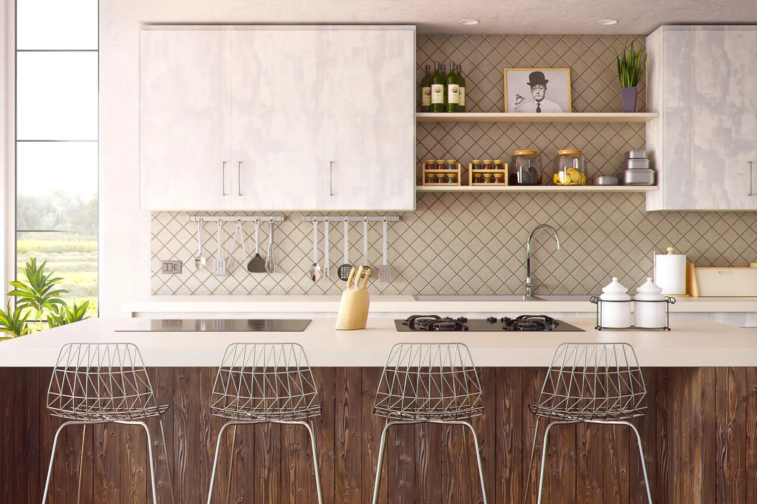 Add style and function to your kitchen with smart open storage. In essence, these elongated and narrow cubbies follow the line of the benchtop while the material mirrors the work surface below. Cohesion works every time!