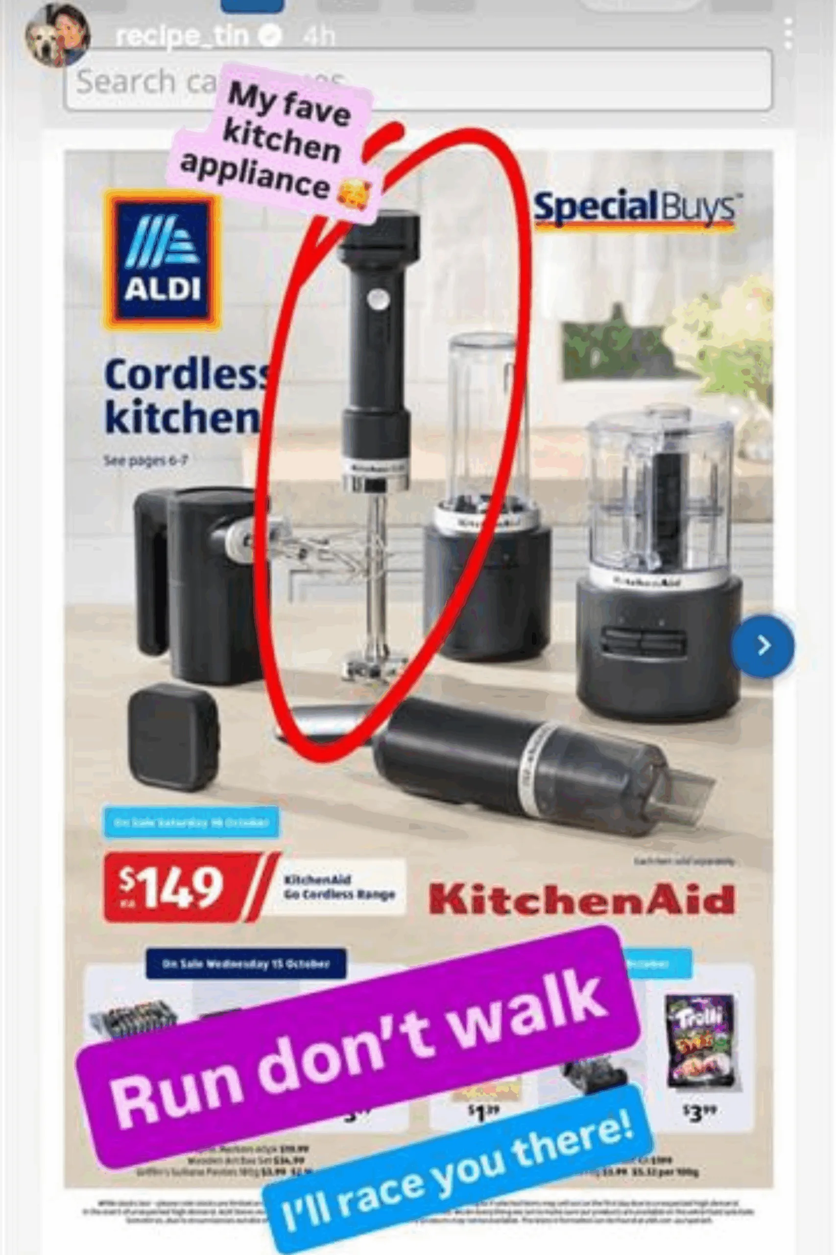 “I keep meaning to show you,” she says in a recent Instagram story. “This is my current favourite appliance. It’s a cordless stick blender. How good is that?”