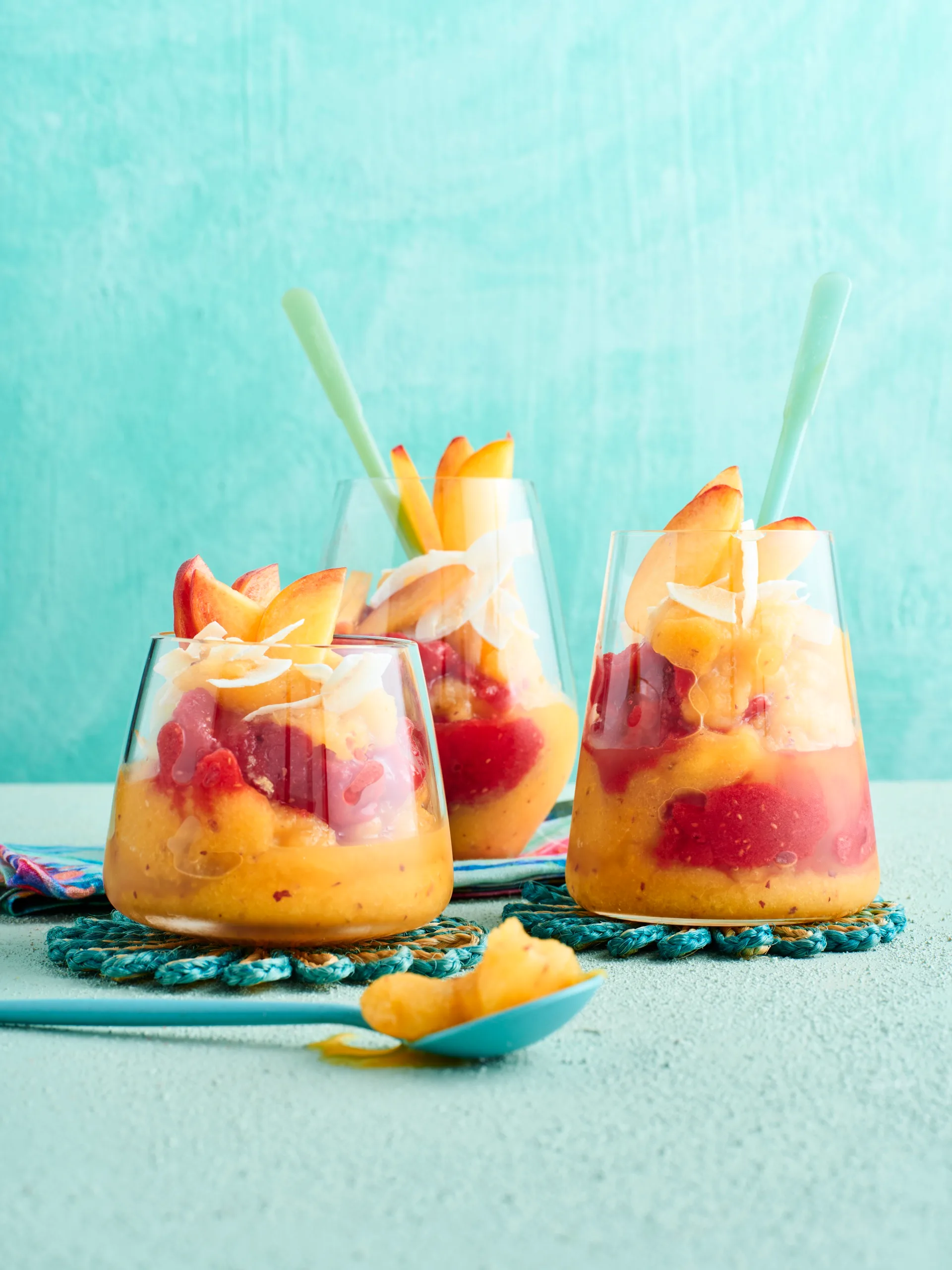 Meet your new summer refresher: a peach and raspberry slushie. Our advice? Keep a bag of extra chopped peaches in the freezer so you can make this whenever the craving hits.
