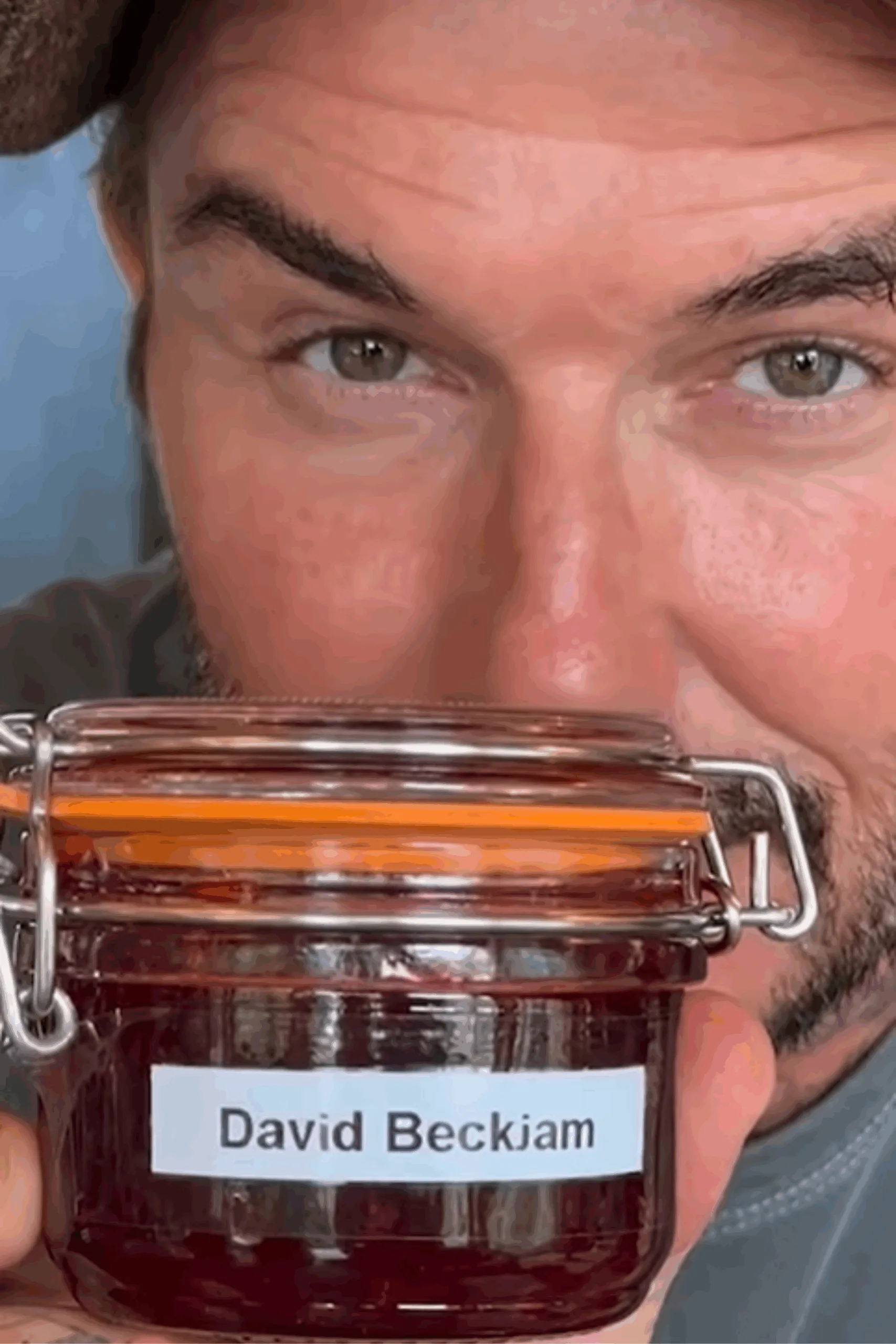 David shows the camera a jar, labelled with the most basic label, ‘David Beckjam.’ Inside is his plum jam.