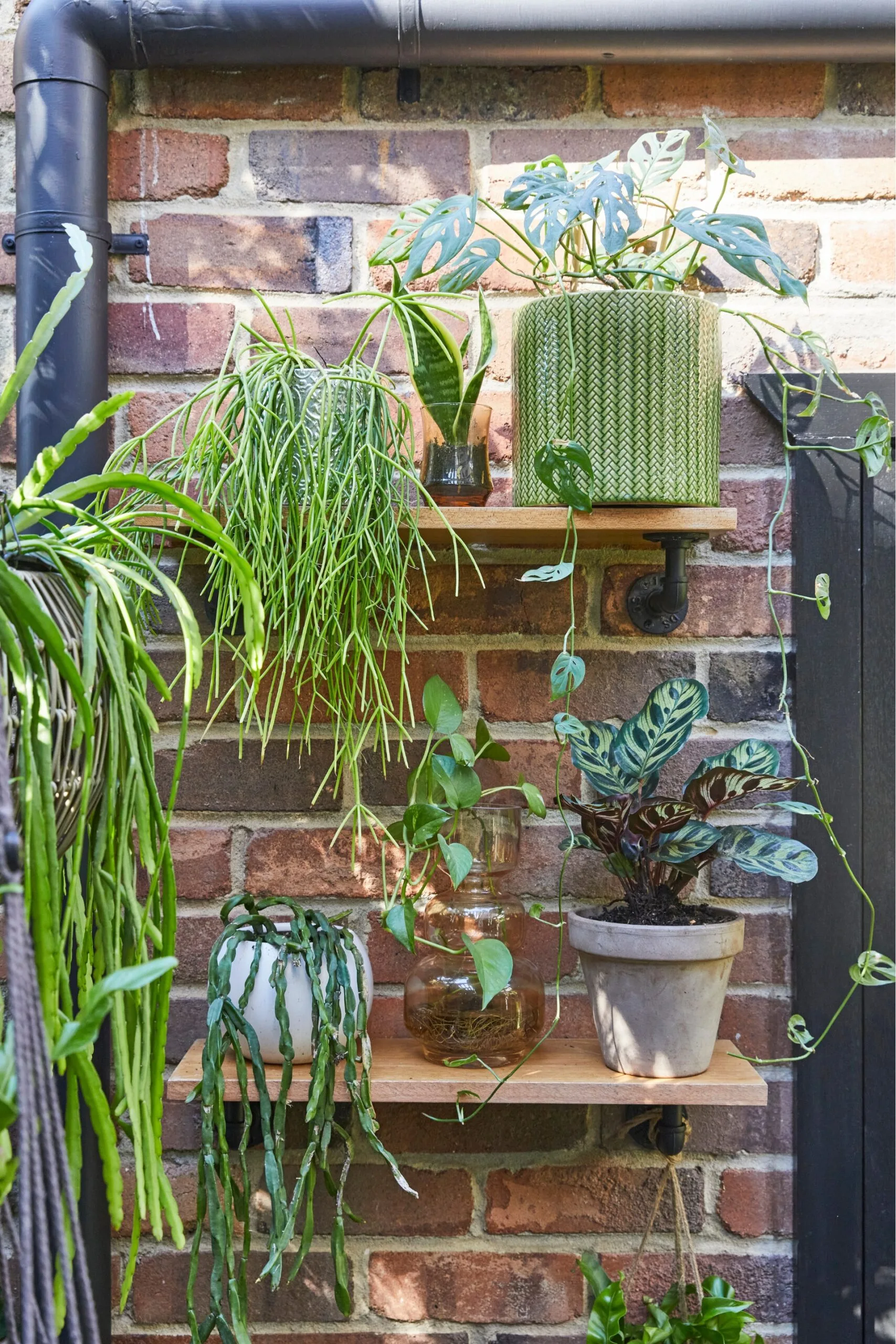 An open shelf isn’t just for books or kitchen essentials. You can also place planters on floating shelves to create a vertical garden with little to no effort.