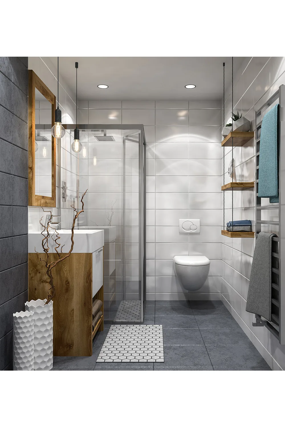 Small bathroom and a small budget? No worries! Small timber touches, such as timber cabinetry, shelving and mirror frame is all you need to add texture to your space. Pair with white tiles for a timeless finish.