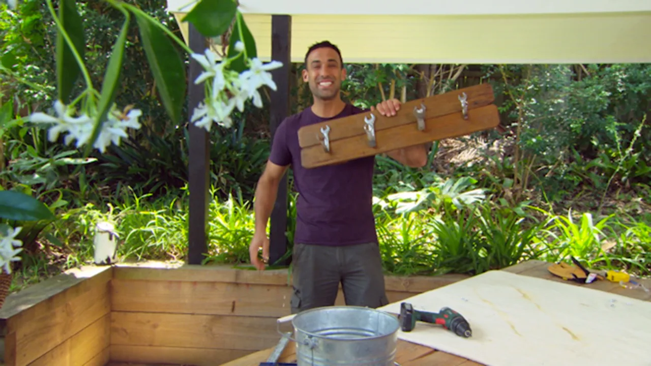 Do you have any old tools lying around? Adam is giving your junk a new lease on life! This really unique and inexpensive project will look great in any entranceway with your hat, coat, scarf or umbrella hanging off it.
