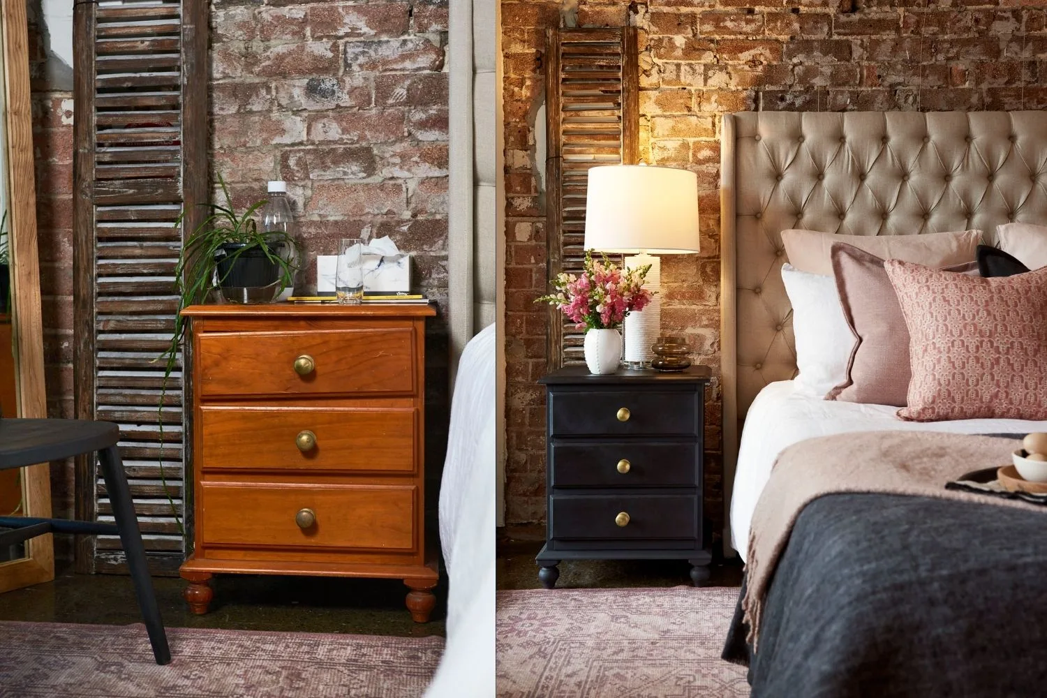 Bedside tables aren’t just nifty places to pop your book and glass of water before bed – they can add a real sense of style and symmetry to a room, too… and you don’t have to spend a fortune to get the look! With a little bit of paint and time you can turn ho-hum pieces into bespoke beauties. Start small with a bedside table and be amazed by what you can achieve.