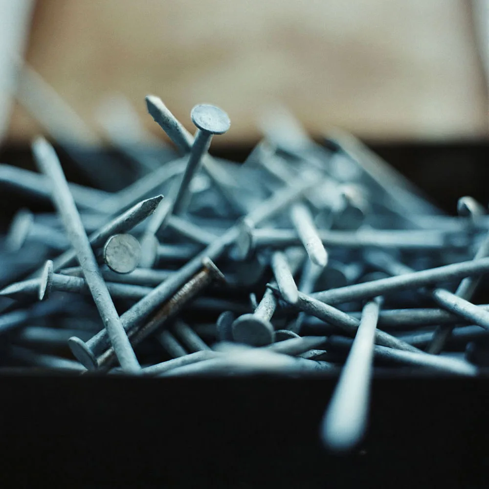Nails that are to be used outside should be galvanised, which is a dull grey coating that prevents the nail from rusting. Nails for interior use can be bright steel or zinc plated and are less expensive than galvanised fixings.