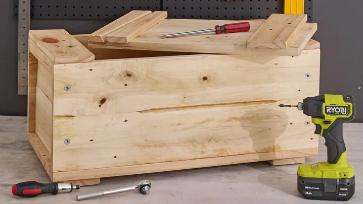 Toolboxes are usually bashed-up, rusting metal boxes – but why not make yourself an upgrade? Inspired by the traditional Japanese wooden toolbox with its integrated handles and a clever sliding lid, this project uses recycled pallet wood to construct a practical storage box.