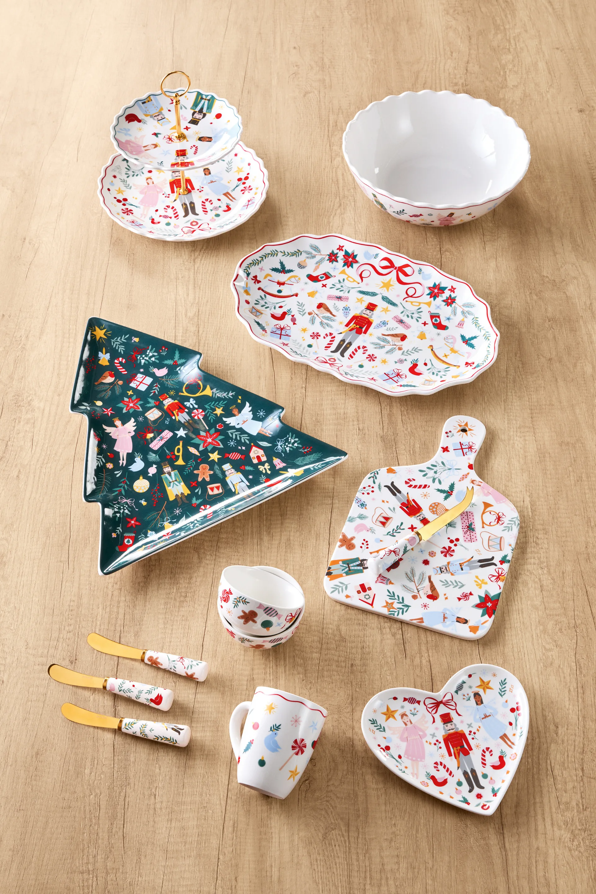 New to their collection is an acacia wooden cutting board ($19.99) with an over-the-counter edge for stability when cutting and a grooved edge to catch any drops. Choose from a range of wooden vegetable or herb tools ($9.99), such as herb rocker, mortar and pestle, grater, salt and pepper dish or vegetable shredder. There will be Christmas cooking gadget assortments ($4.99), cooking utensil assortments ($4.00), a carbon steel roaster with rack ($14.99), Peppertree novelty apron, fabric wine holders, gift bags or gift wrap mix ($7.99), and ceramic oven-to-table baking dishes with a wooden stand (19.99).