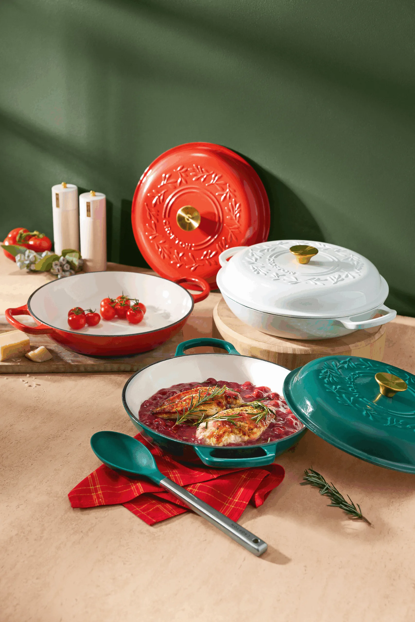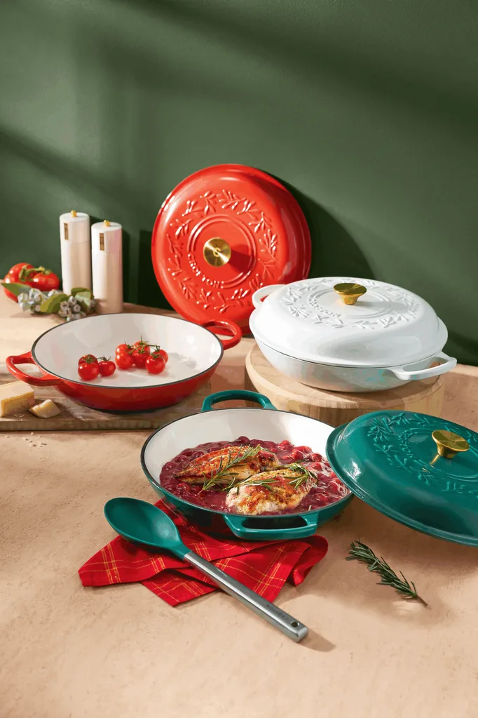 From Wednesday, you can expect to find the Crofton cast-iron French pan in stores. They have a limited-edition Christmas embossed lid and come in three festive colours: red, green, or white. Plus, it’s suitable for all stovetops, including induction.