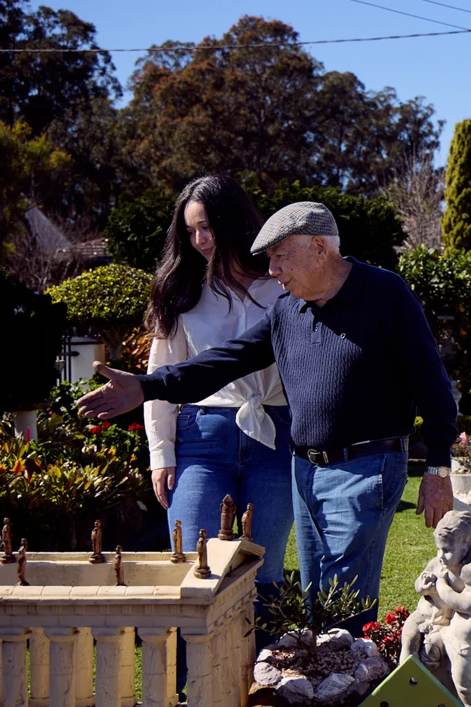Nonno’s garden is special as it represents his culture. It’s filled with references of the life he left behind in Italy. As a young boy, he was a shepherd and farmer. That’s why he has sheep statues. He grows seasonal vegies and herbs, just like his parents. The miniature Italian landmarks remind him of his heritage.