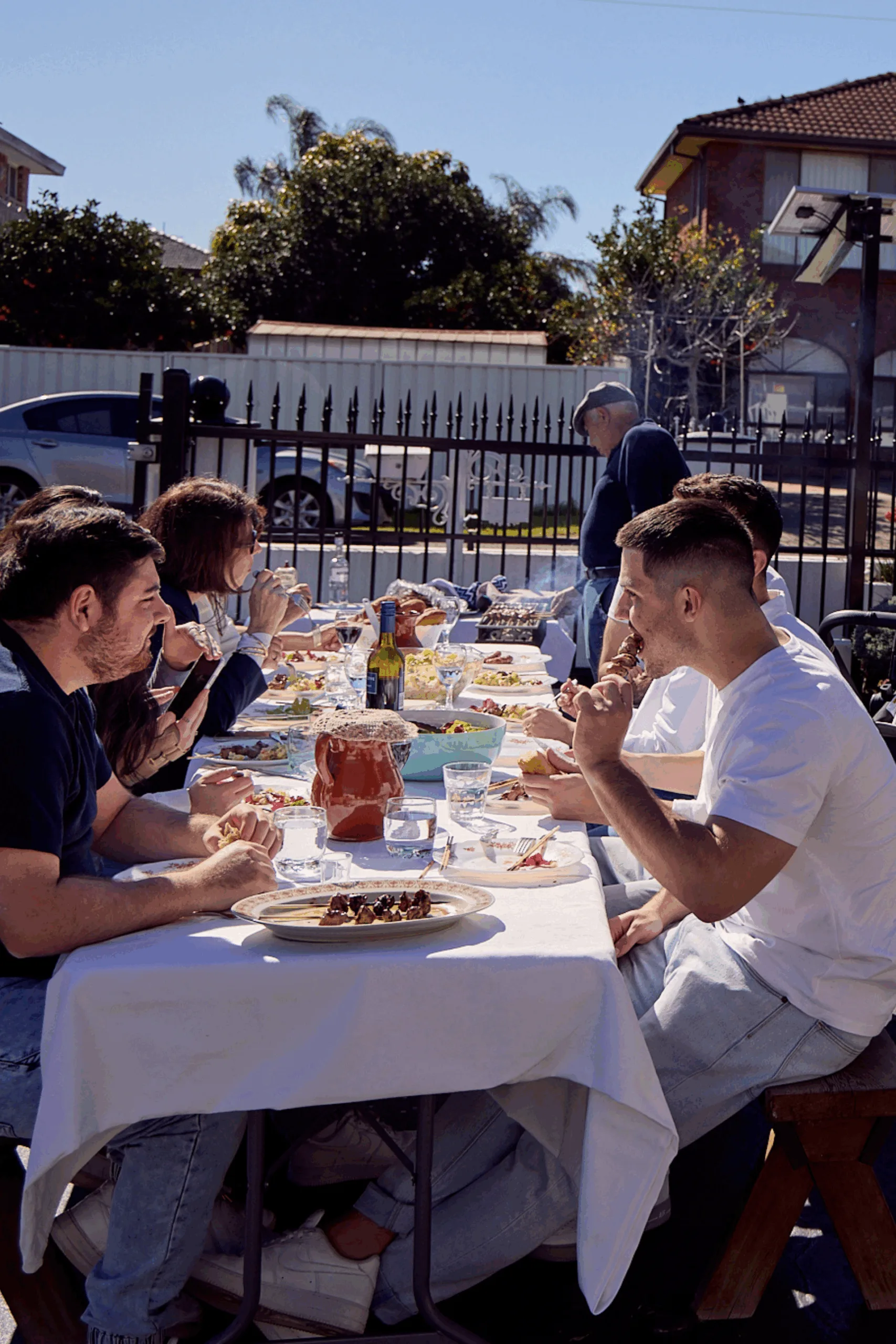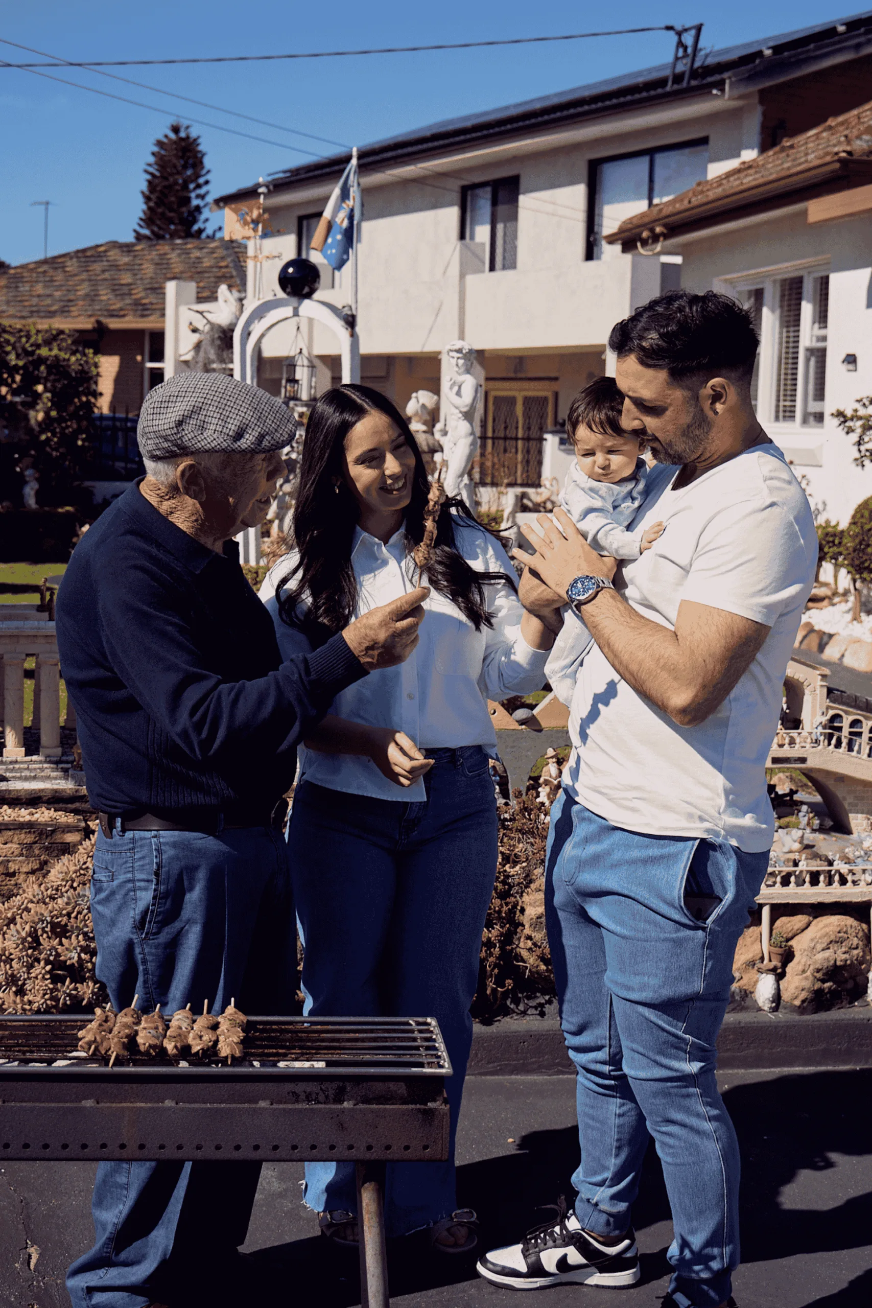 For me, it’s all of those things and more. I picture my nonno, Antonio (or Tony, as we call him), standing by his little coal barbecue, gently rotating stikini (our nickname for his specially marinated lamb skewers) until they’re melt-in-your-mouth tender. He’s often wearing his Italian cap, shorts and a T-shirt, with socks and sandals. There’s a smile on his face as he looks around at his family and the life he and my nonna, Angela, created.
