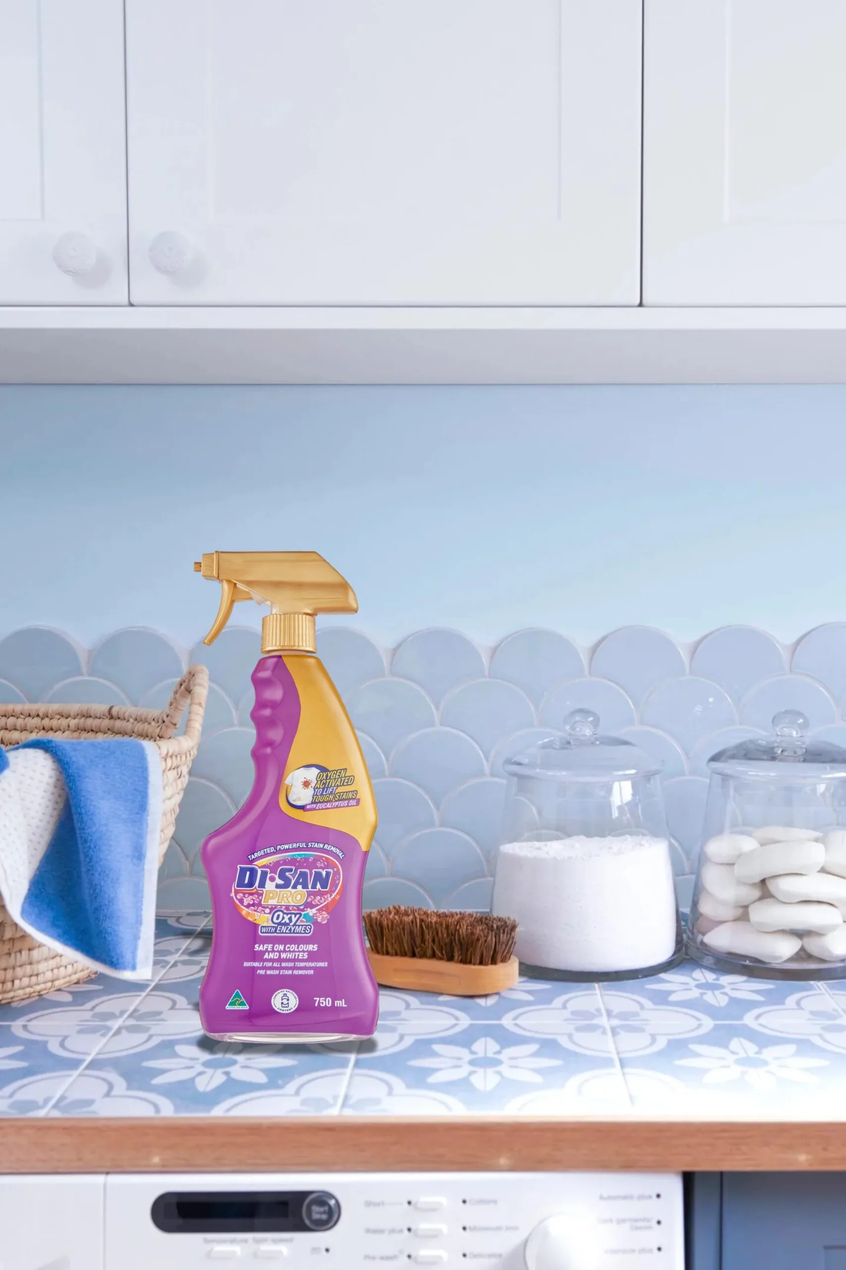 If you’re a fan of ALDI’s affordable, yet effective, cleaning range, then you might already have a bottle sitting in your laundry cupboard. Yep, it’s the $2.10 Di-San Pre Wash Stain Remover, known affectionately by those in the know as “the ALDI stain remover in the purple bottle (not the pink bottle).”