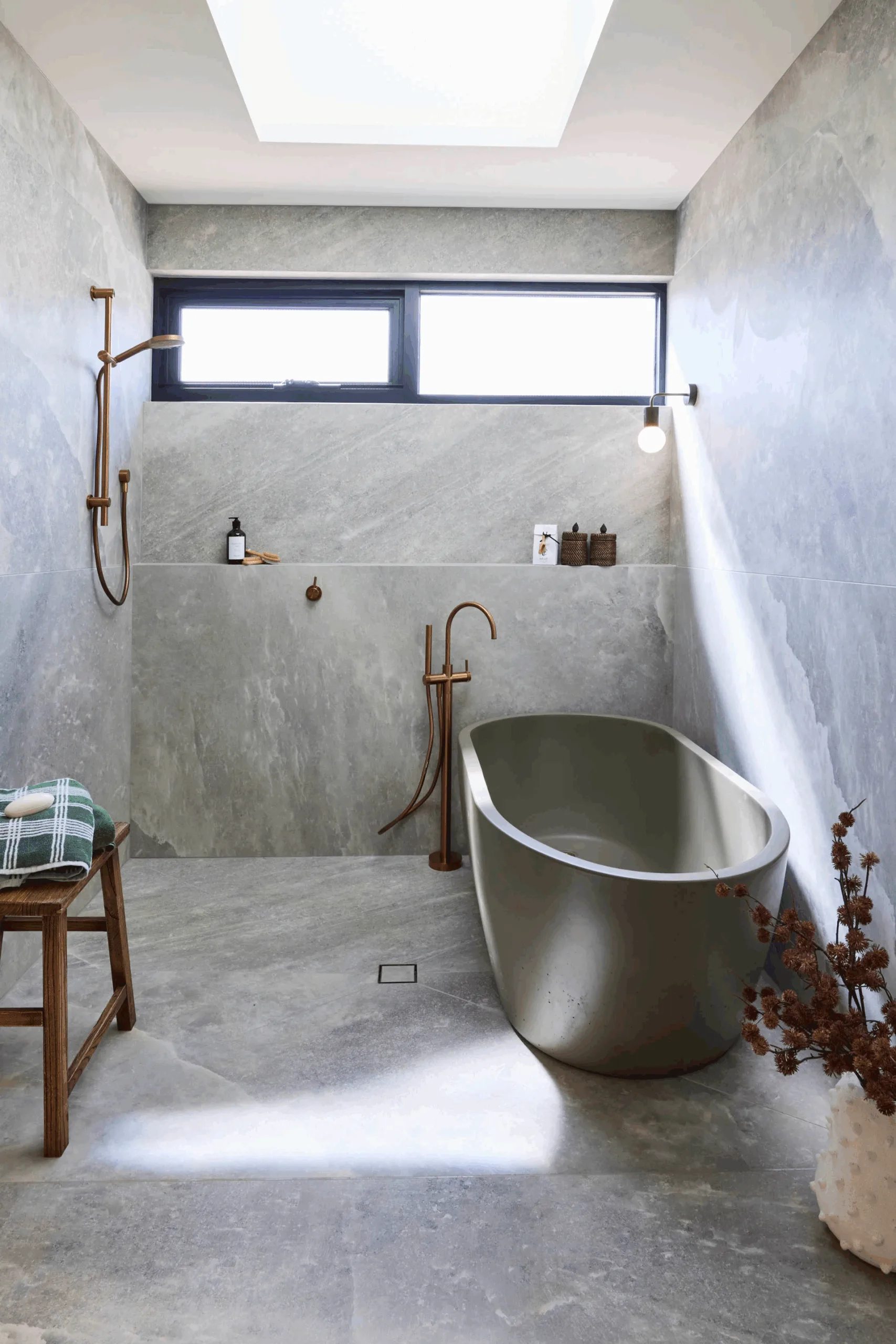 The silver lining? Everything else in the room was perfect. From the calming colour palette to the striking concrete bath, the judges were smitten.
