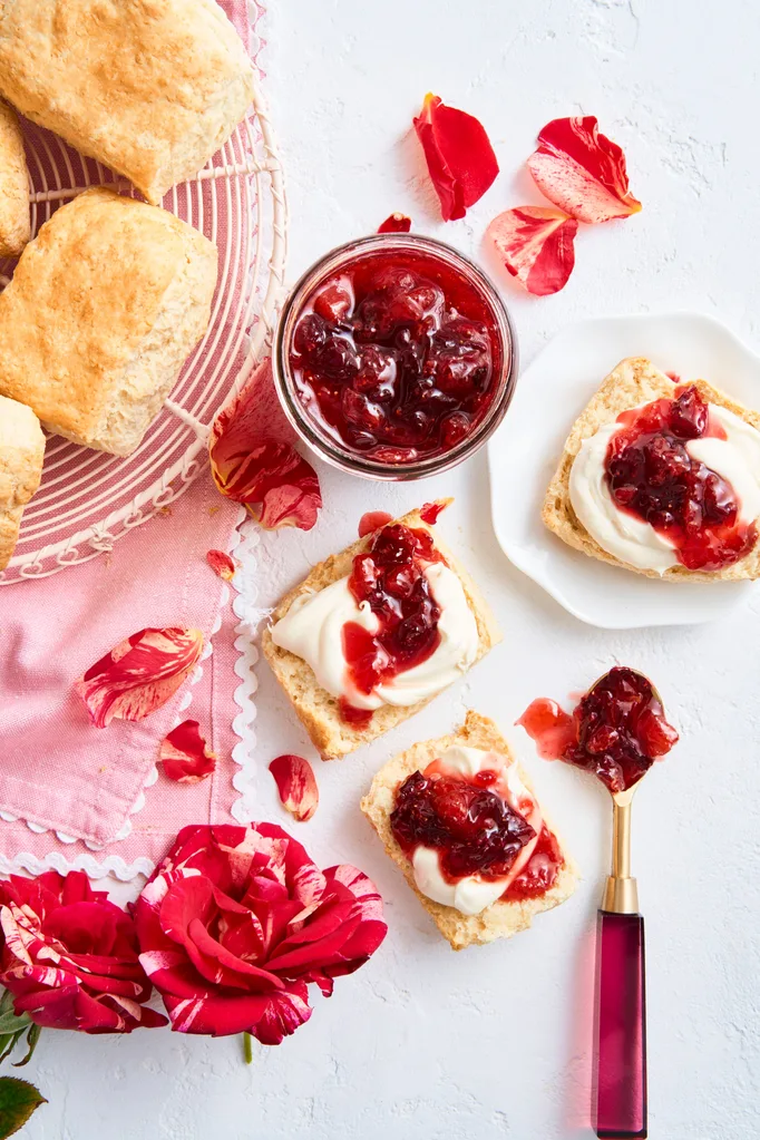 These scones aren’t served like your typical recipe; they’re paired with a perfectly sweet and rose-infused jam that’ll have you coming back for more. They’ll be your new go-to rose scones recipe.
