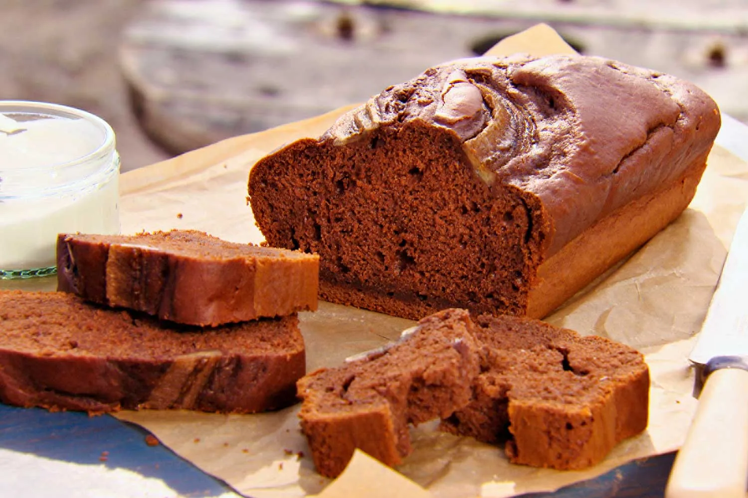 Preheat oven to 170 degrees C fan-forced (190 degrees C conventional). Combine 2 of the bananas, chickpeas, sour cream, olive oil, sugar, eggs and cocoa powder in the bowl of a food processor or blender and puree until smooth. Sift in flour, bicarb and spices, then pulse until smooth.