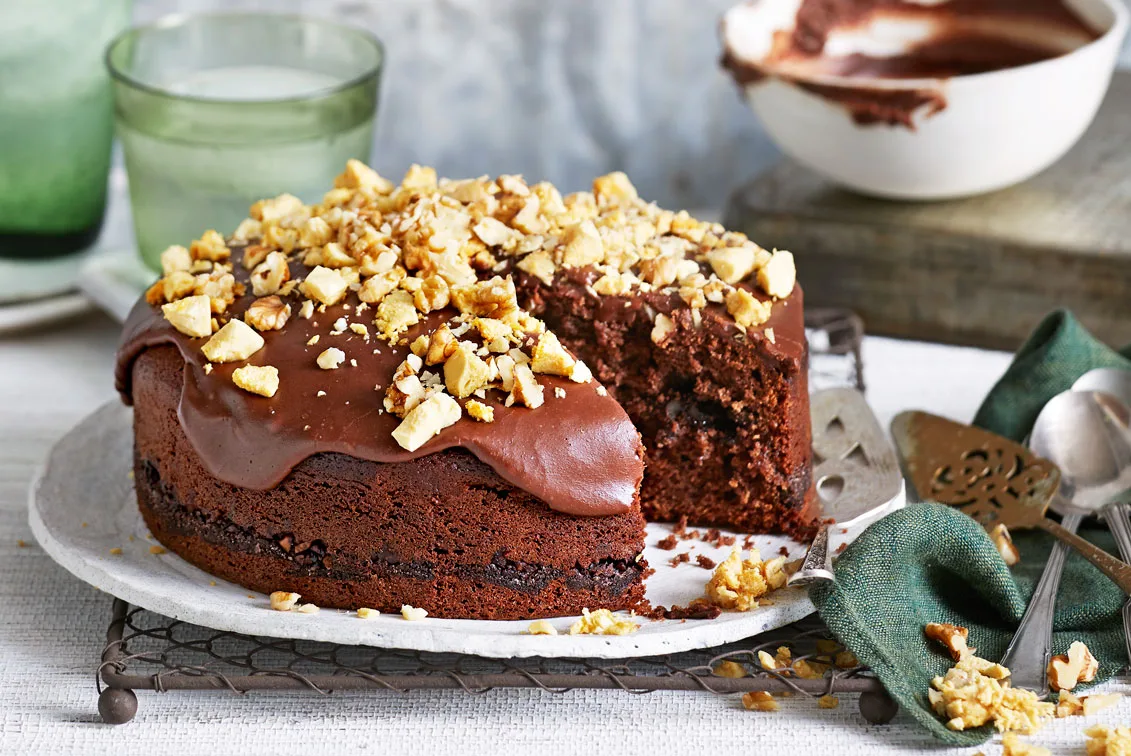 Trim cake so it sits level. Transfer to a serving plate or cake stand. Spoon over icing, letting it drizzle down sides. Set aside for 30 minutes or until icing sets. To serve, garnish with honeycomb and extra walnuts.