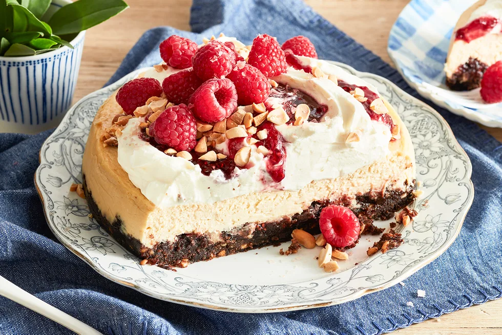 Peanut butter and jam are synonymous with sandwiches, but they’re even yummier flavours when put into a cheesecake. It starts with a chocolate mud cake and peanut butter base, topped with raspberry jam, cheesecake and then whipped cream and fresh raspberries. This just might be your new favourite dessert!