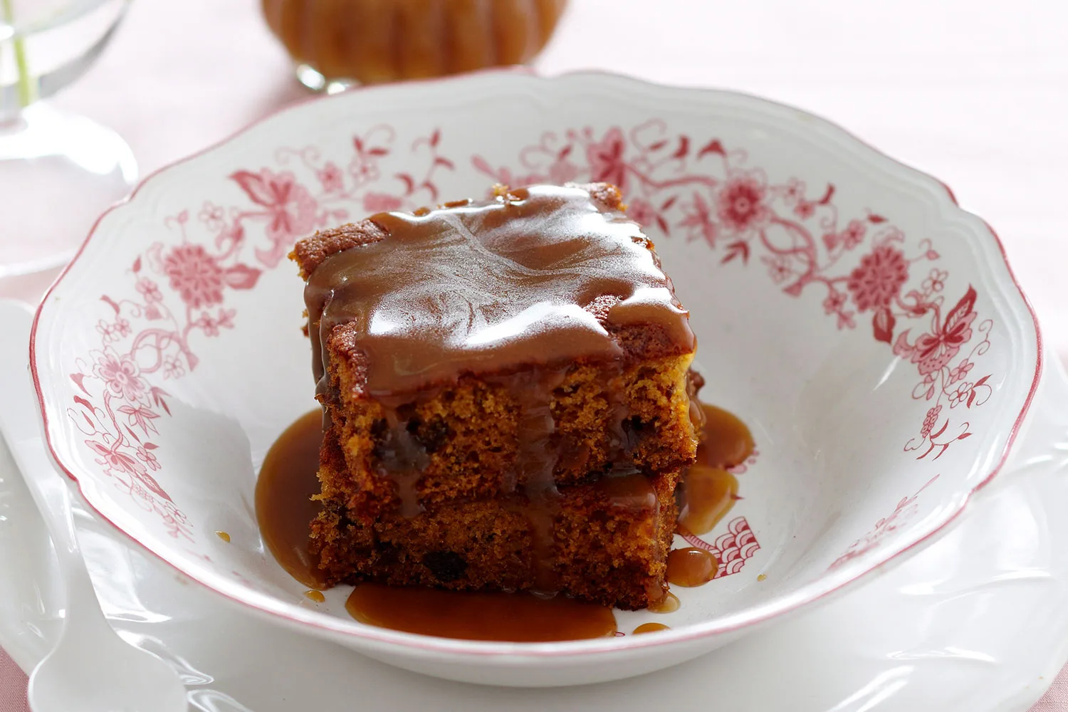 Sticky date and pear tray bake with butterscotch sauce