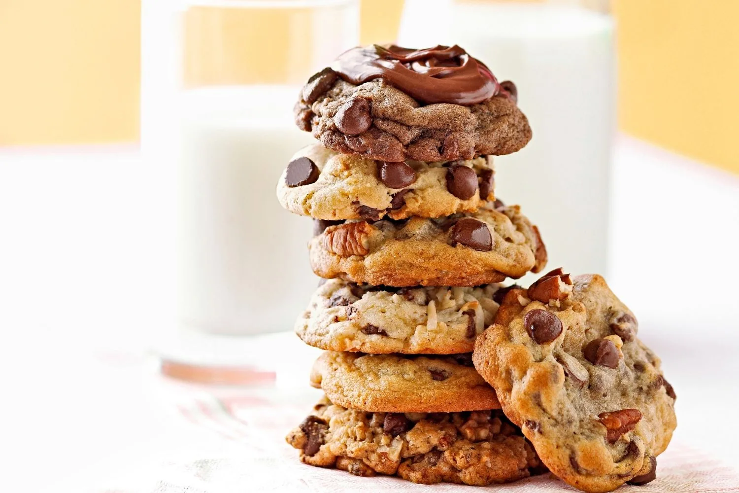 To make double chocolate-chip cookies, divide mixture in two. Add 1/4 cup cocoa to one 1/2 and bake as directed. Top with ganache.Â