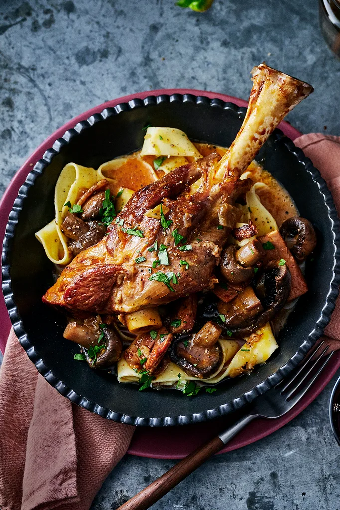 Stroganoff goes extra hearty with fall-apart lamb shanks adding even more richness to this winter staple, and making it fancy enough to serve up at your next dinner party. Shanks for the memories!
