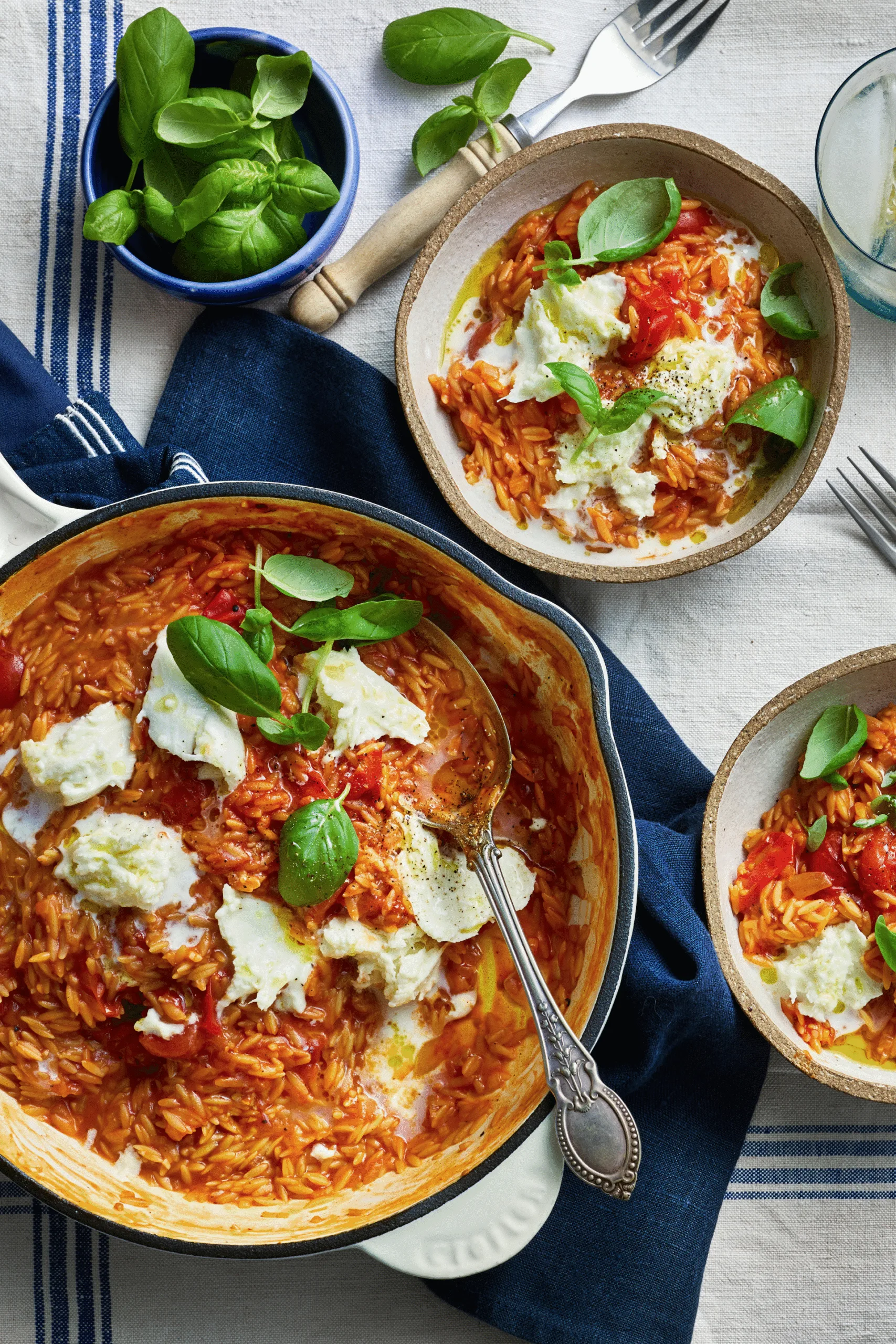Cherry tomatoes, creamy buffalo mozzarella and fragrant basil come together in Matt Moran’s baked risoni. It’s a deliciously simple recipe that delivers big comfort with minimal effort. It’s rich without being heavy, simple enough for weeknights and impressive enough for guests. Plus, it’s the kind of cheesy-tomato dinner you’ll find yourself making on repeat.