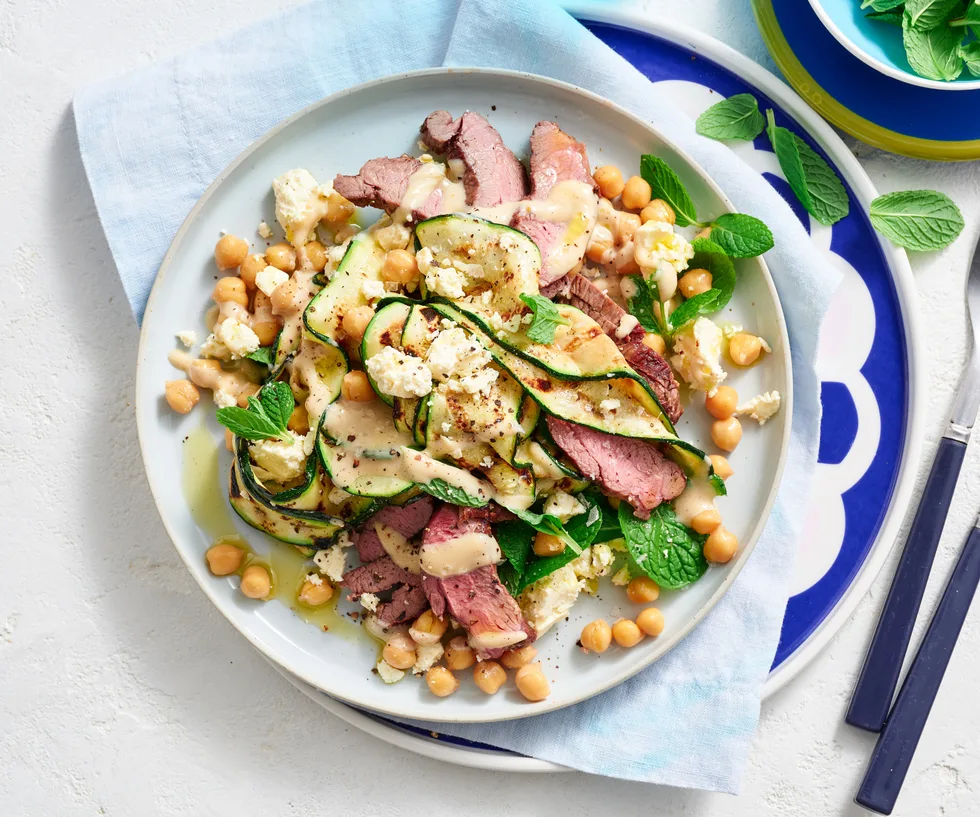 This delicious chargrilled zucchini, lamb and chickpea salad brings together smoky zucchini, tender lamb, and protein-packed chickpeas in a vibrant, wholesome dish.