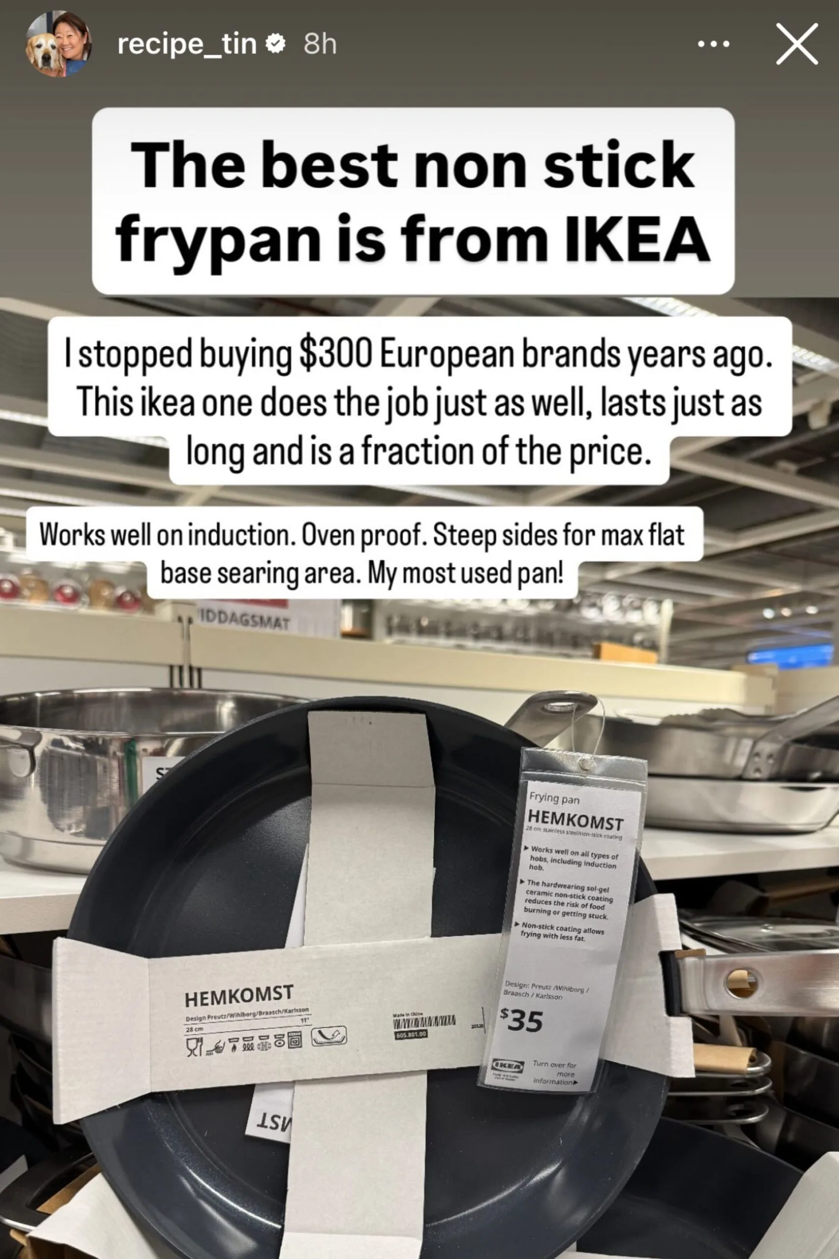 Nagi Maehashi of RecipeTin Eats took to her Instagram story to share that the “best non-stick frying pan” in her opinion is actually from IKEA, and it starts at only $25.