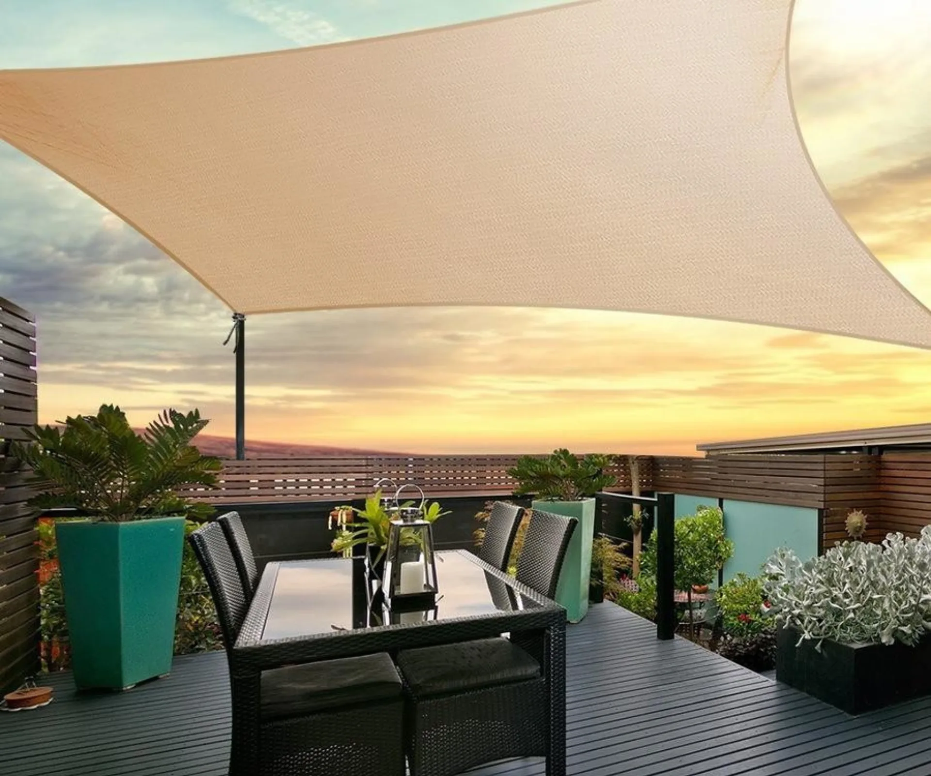 If you can’t get away from the sun, make your own shade. Shade sails, pop-up gazebos and clip-on umbrellas can turn even the tiniest courtyard into a cool spot. If you’re renting, try suction-cup hooks or fence clips so you don’t have to drill any holes.