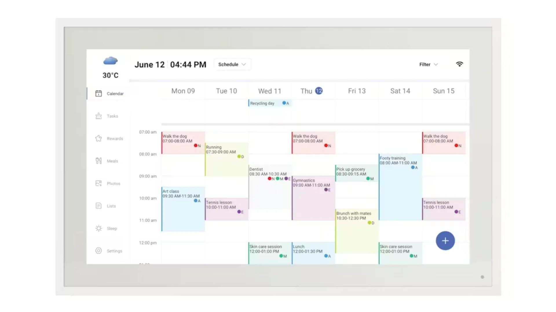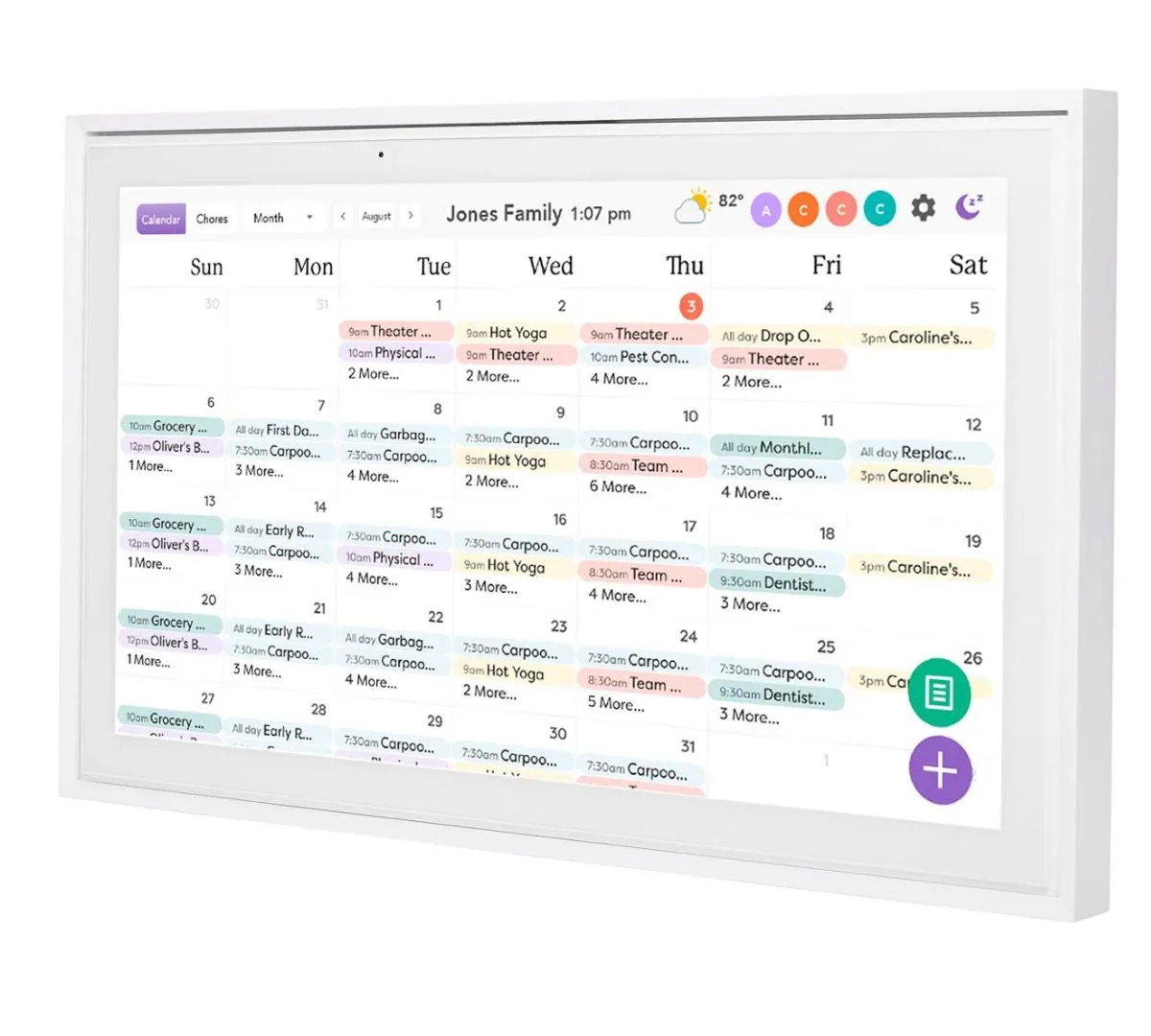 What it does: A polished 15-inch HD touchscreen family organiser that integrates with Google, Apple, Outlook, Yahoo and Cozi. Includes chore charts, meal planning, colour-coded schedules and a sleek app interface.
